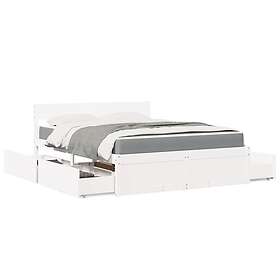 vidaXL Sängram med lådor och madrass vit 160x200 cm massiv furu