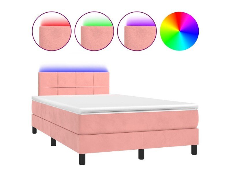 vidaXL Ramsäng med madrass & LED rosa 120x190 cm sammet