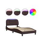 vidaXL Sängram med LED-belysning mörkbrun 90x200 cm tyg