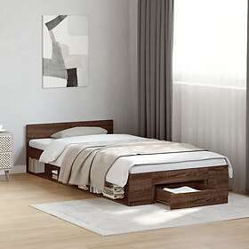 vidaXL Sängram med låda brun ek 90x200 cm konstruerat trä