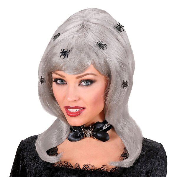 Häxa Grå Peruk med Spindlar One size
