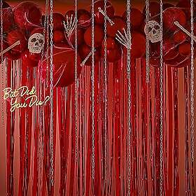 Ballongbåge Röd med Streamers & Dödskallar