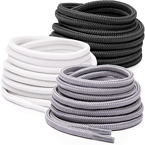 Miscly [3 Par] Runda Skosnören, för Skor, Sneakers och Kängor (137 cm, Svart, Vit, Grå)