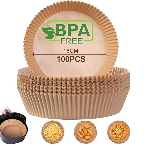 AiQInu Bakpapper för varmluftsfritös, luftfryer bakpapper rund 16 cm 100 stycken