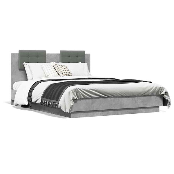 vidaXL Sängram med huvudgavel betonggrå 135x190 cm konstruerat trä