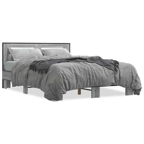 vidaXL Sängram grå sonoma 140x200 cm konstruerad trä och metall