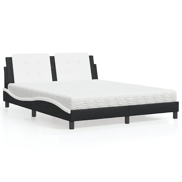 vidaXL Säng med madrass svart och vit 160x200 cm konstläder