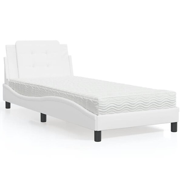 vidaXL Säng med madrass vit 90x190 cm konstläder