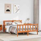 vidaXL Sängram med huvudgavel vaxbrun 120x190 cm massiv furu