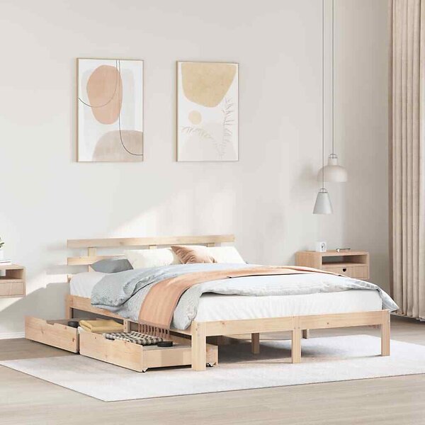 vidaXL Sängram med lådor 160x200 cm massiv furu