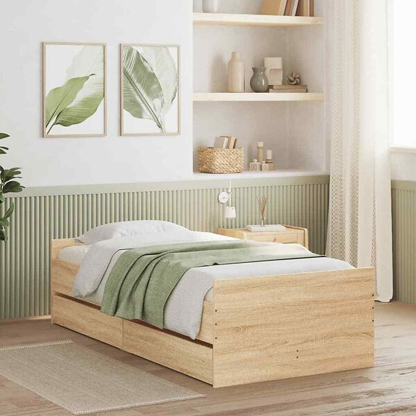 vidaXL Sängram med lådor sonoma-ek 90x200 cm