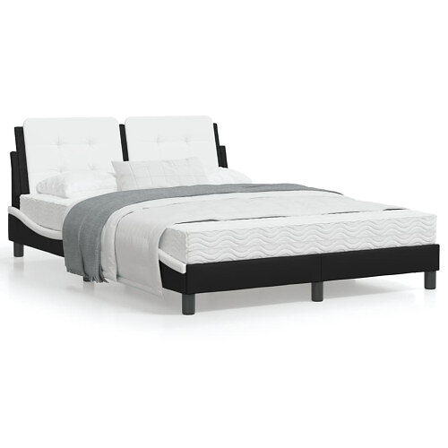 vidaXL Sängram med LED-belysning svart och vit 140x200 cm konstläder