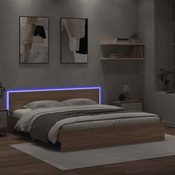 vidaXL Sängram med huvudgavel och LED sonoma-ek 180x200 cm