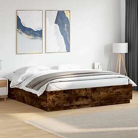 vidaXL Sängram med LEDs rökfärgad ek 200x200 cm konstruerad trä