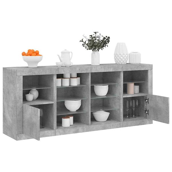 vidaXL Skänk med LED-belysning betonggrå 163x37x67 cm