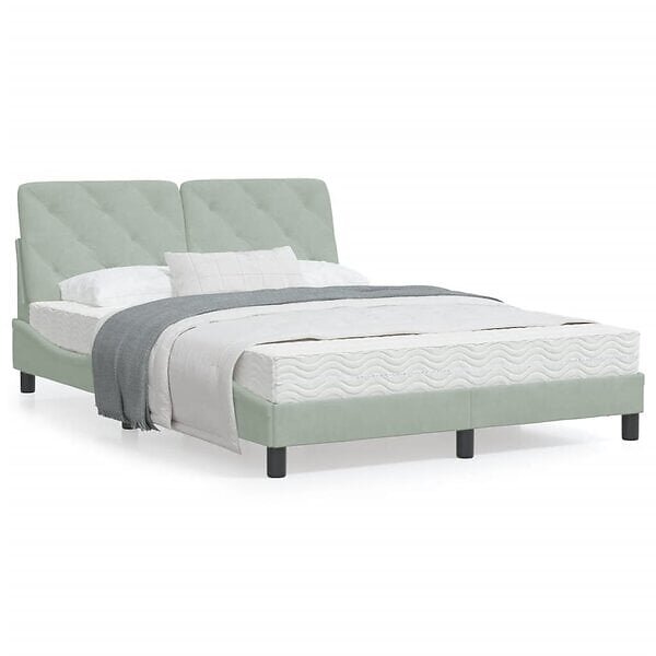 vidaXL Säng med madrass ljusgrå 140x200 cm sammet