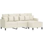 vidaXL 3-sitssoffa med fotpall gräddvit 180 cm sammet
