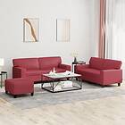 vidaXL Soffgrupp 3 delar vinröd konstläder