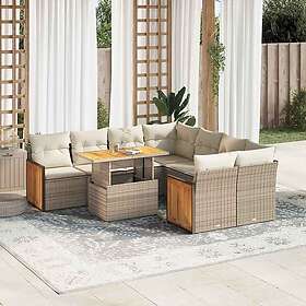 vidaXL Ensemble de salon 9 pièces avec coussins beige résine tressée acacia