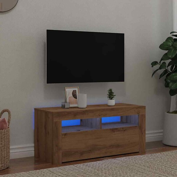 vidaXL Meuble TV avec LED chêne artisanal 90x35x40 cm bois d'ingénierie