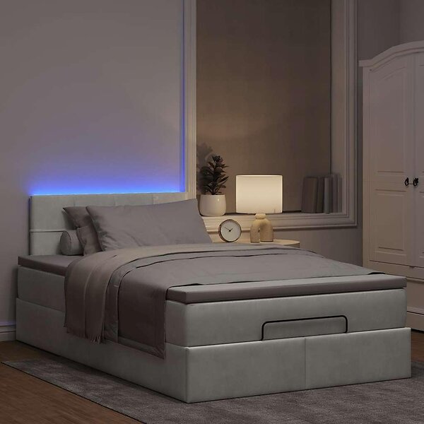 vidaXL Ottoman sängram med madrass ljusgrå 120x190 cm sammet