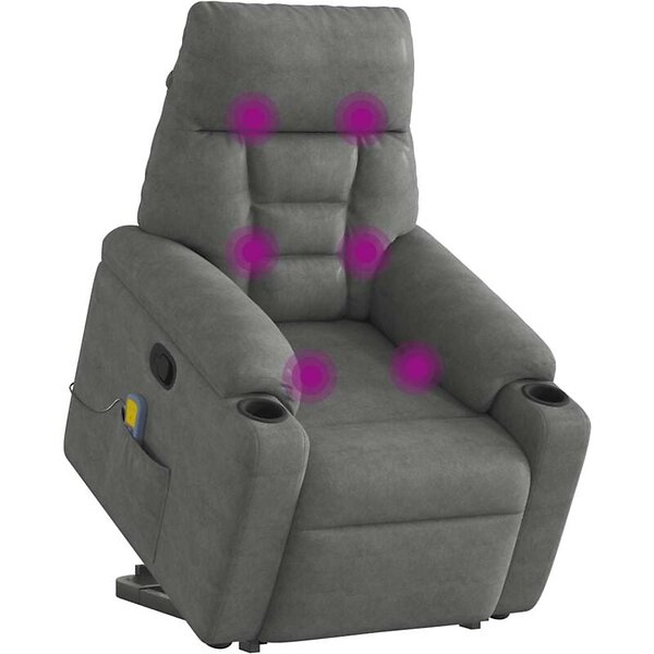 vidaXL Massagefåtölj med uppresningshjälp mörkgrå mikrofibertyg