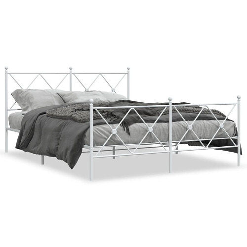 vidaXL Sängram med huvudgavel och fotgavel vit metall 160x200 cm