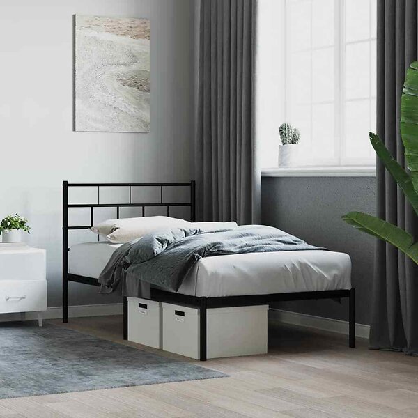 vidaXL Sängram med huvudgavel metall svart 100x190 cm