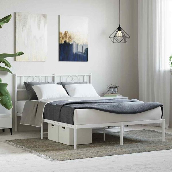 vidaXL Sängram med huvudgavel metall vit 135x190 cm
