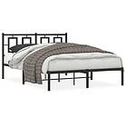 vidaXL Sängram med huvudgavel metall svart 135x190 cm