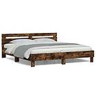 vidaXL Sängram med huvudgavel och LED rökfärgad ek 200x200 cm