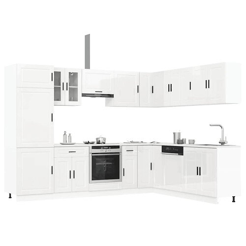 vidaXL Köksskåpsset Porto 14 delar högglans vit konstruerat trä
