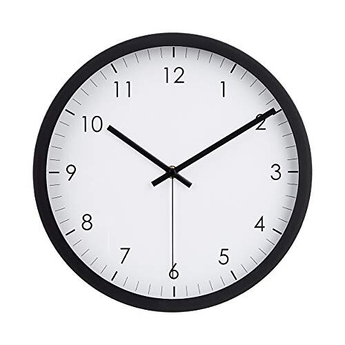 Amazon Basics Klassisk batteridriven, tyst, rund väggklocka 30 cm