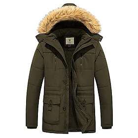 WenVen Herr vinter ledig fleecerock klassisk bomull utomhusjacka fuskpäls trimmad huva rockar mellanlängd vindtät parkas jacka, Armégrönt