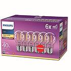 Philips LED-klassisk ersätter 40 W, E27, A60, 6-pack, varmvit (2 700 Kelvin), 470 lumen, klar
