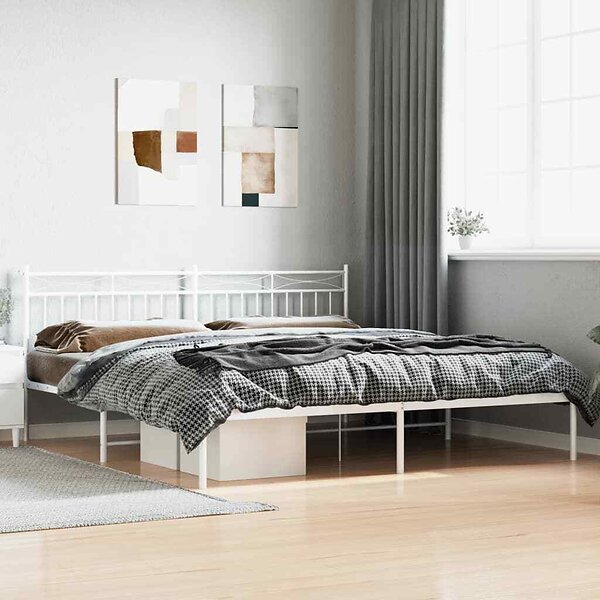 vidaXL Sängram med huvudgavel metall vit 200x200 cm