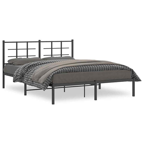 vidaXL Sängram med huvudgavel metall svart 150x200 cm