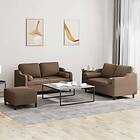 vidaXL Soffgrupp med kuddar 3 delar brun tyg