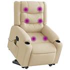 vidaXL Elektrisk massagefåtölj med uppresningshjälp gräddvit tyg