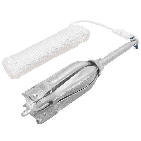 vidaXL Hopfällbart ankare med rep silver 12kg varmförzinkat gjutjärn