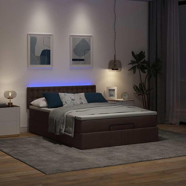 vidaXL Ottoman säng med madrass mörkbrun 140x190 cm tyg