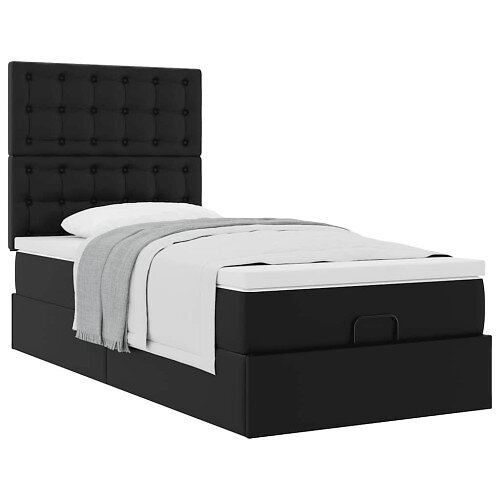 vidaXL Ottoman säng med madrass svart 90x190 cm konstläder