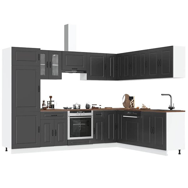 vidaXL Köksskåpsset Kalmar 14 delar svart konstruerat trä