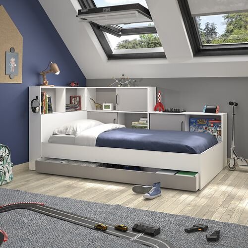 Lit 1 Place Avec Tiroir Et Rangements 90x200 Cm Louane