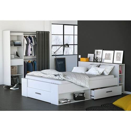 Lit 140 X190 Cm Avec Tête De Lit Et Rangements Ilian