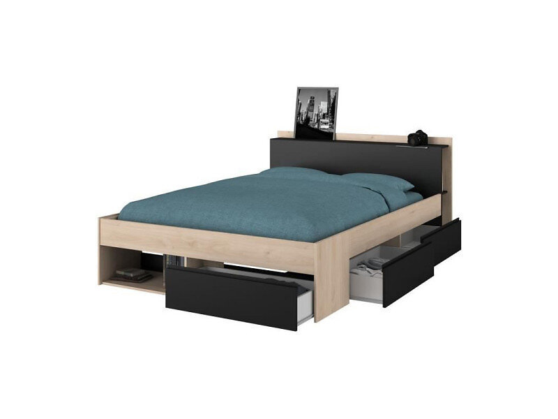 Lit Double Adulte 140x200 Cm Avec Rangements Boost