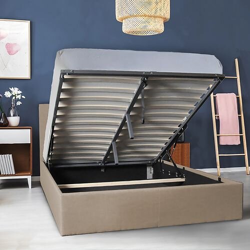 Sans MARQUE Lit coffre avec tête de lit capitonnée, livré sommier 140x190 CM CATANE beige Taille unique
