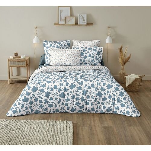 Actuel Parure housse de couette en flanelle motif GEORGE bleu 200x200 cm
