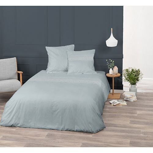 Parure housse de couette en coton 57 fils broderie NINA gris 140x200 cm