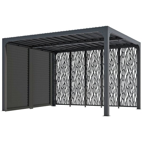 Habrita Pergola bioclimatique Autoportée avec ventelles mobiles et moucharabieh Aluminium Gris 10,8m²